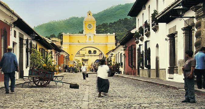 It’s not a terrible idea, and the film’s Guatemala backdrop sizzles with local and literal colors, the latter thanks to the vivid native clothing and painterly pastel buildings of Antigua. (The notes say that this is the first outside production since the ’30s to film in Guatemala.) But a major flaw limits the film’s appeal and box-office potential.
